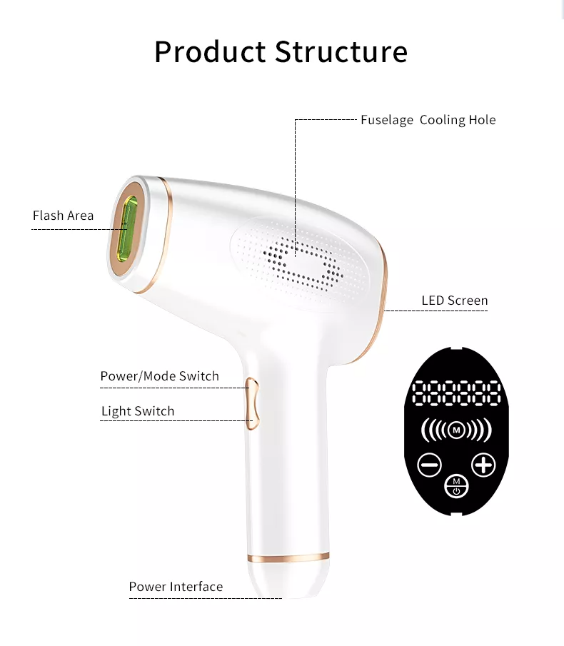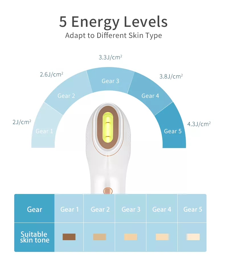 يحتوي على 5 مستويات للطاقة للاختيار من بينها بالاعتماد على المنطقة المعالجة وحساسية الجلد وزرين، ومن السهل تعديل مستوى الطاقة والانتقال بين الوضعين. شاشة LCD كبيرة بحيث يمكنك التحكم في الحالة عند التشغيل.